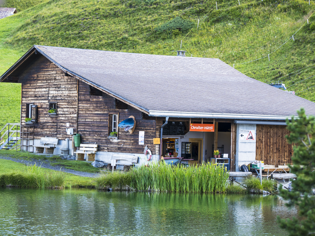 Would you like to eat a little snack while enjoying the tickle path? Right next to the Härzlisee is a little, rustic kiosk: Kräuterhut. At the Kräuter Hut you can buy hot and cold drinks, sausages and bread for the barbecue, sandwiches, sweets, diverse local products, and Globi souvenirs.