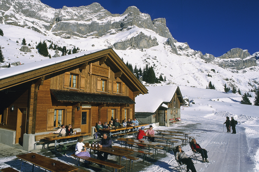 Authentic coziness, a beautiful mountain panorama, and Engelberg specialties (cheese slices, gingerbread) are available here.