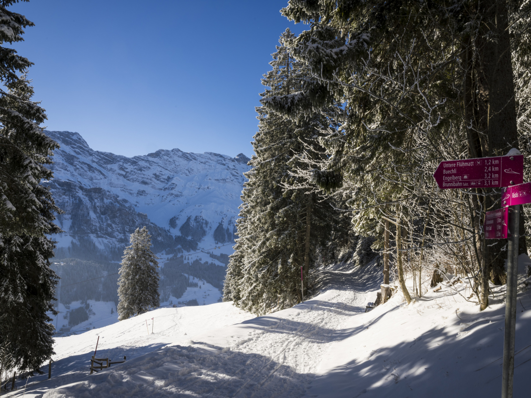 Begleitet von einem ortskundigen Guide geht es zur Bordbahn, wo an der Bergstation die Schneeschuhtour mit spektakulärer Aussicht beginnt. Vorbei am Waldrand, mitten in der Schnee-Idylle geht es Richtung Brunnihütte. Hier werden Sie mit dem wohlverdienten Mittagessen erwartet. Zum Abschluss geht es mit dem Schlitten rasant Richtung Mittelstation Ristis und anschliessend mit der Luftseilbahn zurück nach Engelberg.