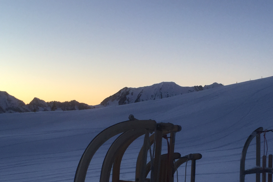 Nach dem stimmungsvollen Fondueplausch geht’s ab auf den Schlitten – mit Stirnlampe (bitte mitbringen) zum Ristis hinunter. Die Luftseilbahn bringt dich zurück ins Tal nach Engelberg.
